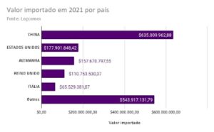 Além disso, o principal fornecedor do produto foi a China, com mais de US$ 635 milhões. Na sequência, vem Estados Unidos, Alemanha, Reino Unido e Itália.