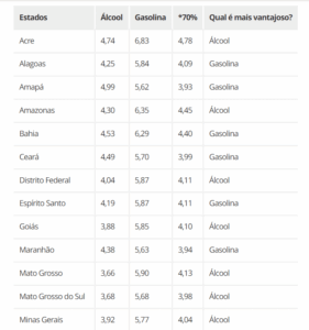 O levantamento da ANP mostra que o etanol está mais competitivo em relação à gasolina em oito estados, incluindo Minas Gerais e o Distrito Federal, com uma paridade média de 65,92%. Estados como Acre e Amazonas também apresentaram uma competitividade do etanol sobre a gasolina.