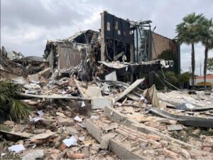 O Vasto Restaurante, que faz parte do grupo Coco Bambu, ficou destruído após explosão na manhã desta quarta-feira (21), em